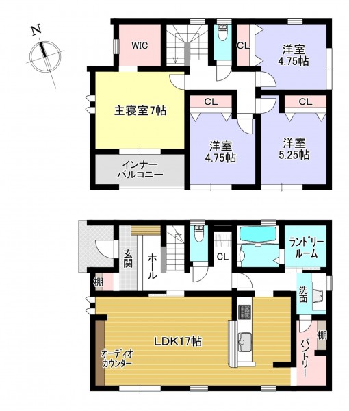 | 設備 | システムキッチン、シャンプードレッサー、洗浄便座、浴室暖房乾燥機、複層ガラス、Wクロゼット、モニタ付インターホン、駐車場3台分、床下収納、トイレ2箇所、浄水器付き | ||
